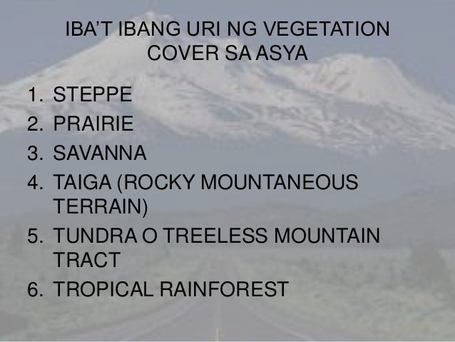 Ang Mga Vegetation Cover Ng Asya Youtube. Ano ang mga vegetation cover sa timog silangang asya - 366476 shanelle2 shanelle2 13072016 Araling Panlipunan Junior High School answered Ano ang mga vegetation cover sa timog silangang asya 2 See answers Advertisement Advertisement minatozaki minatozaki Ang vegetation cover ng Timog Silangang Asya ay. Asias Vegetation Cover Data Chronicle Sa gawaing ito ay maaari kang gumamit ng ibang batayang aklat sa Araling Panlipunan II ang tungkol sa Asya o anumang kagamitan o pamamaraan upang makalikom ng mga karagdagang datos at makapagbigay ng maayos na mga sagot sa bawat bahagi ng Data Chronicle.