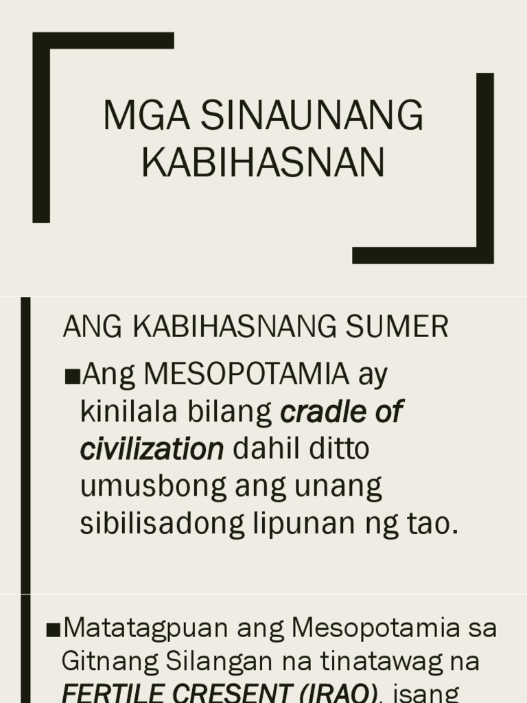 Mga Sinaunang Kabihasnan Mga Sinaunang Kabihasnan